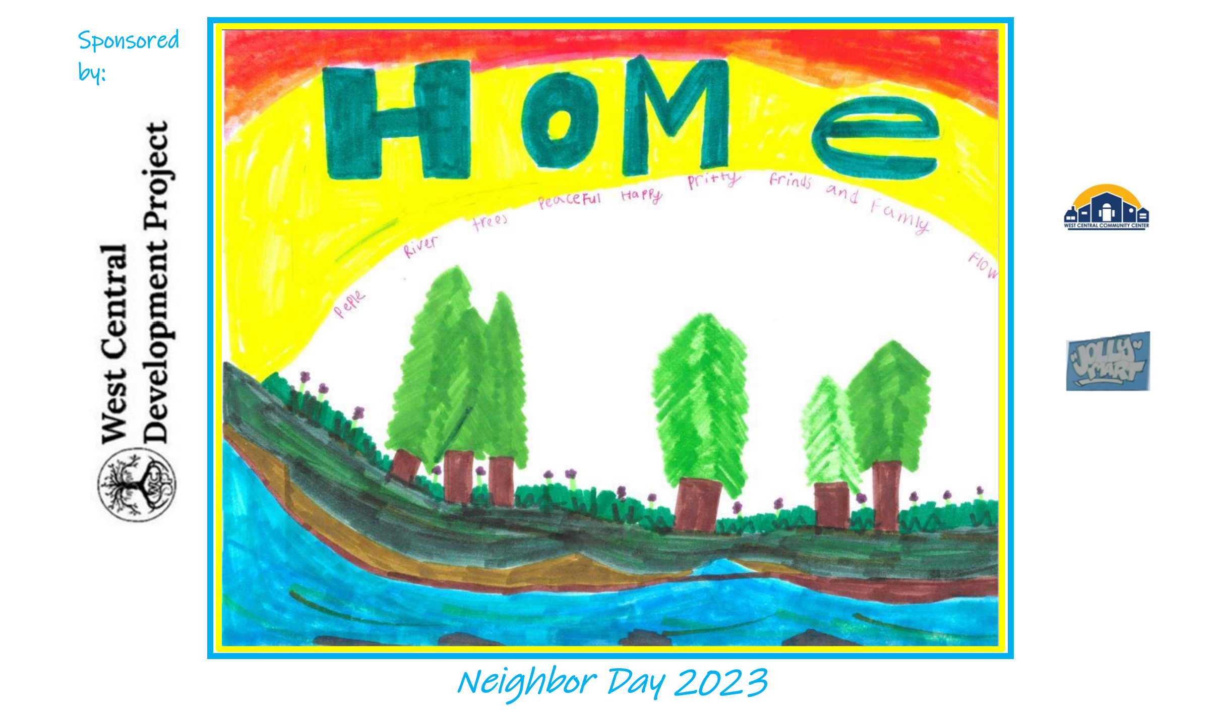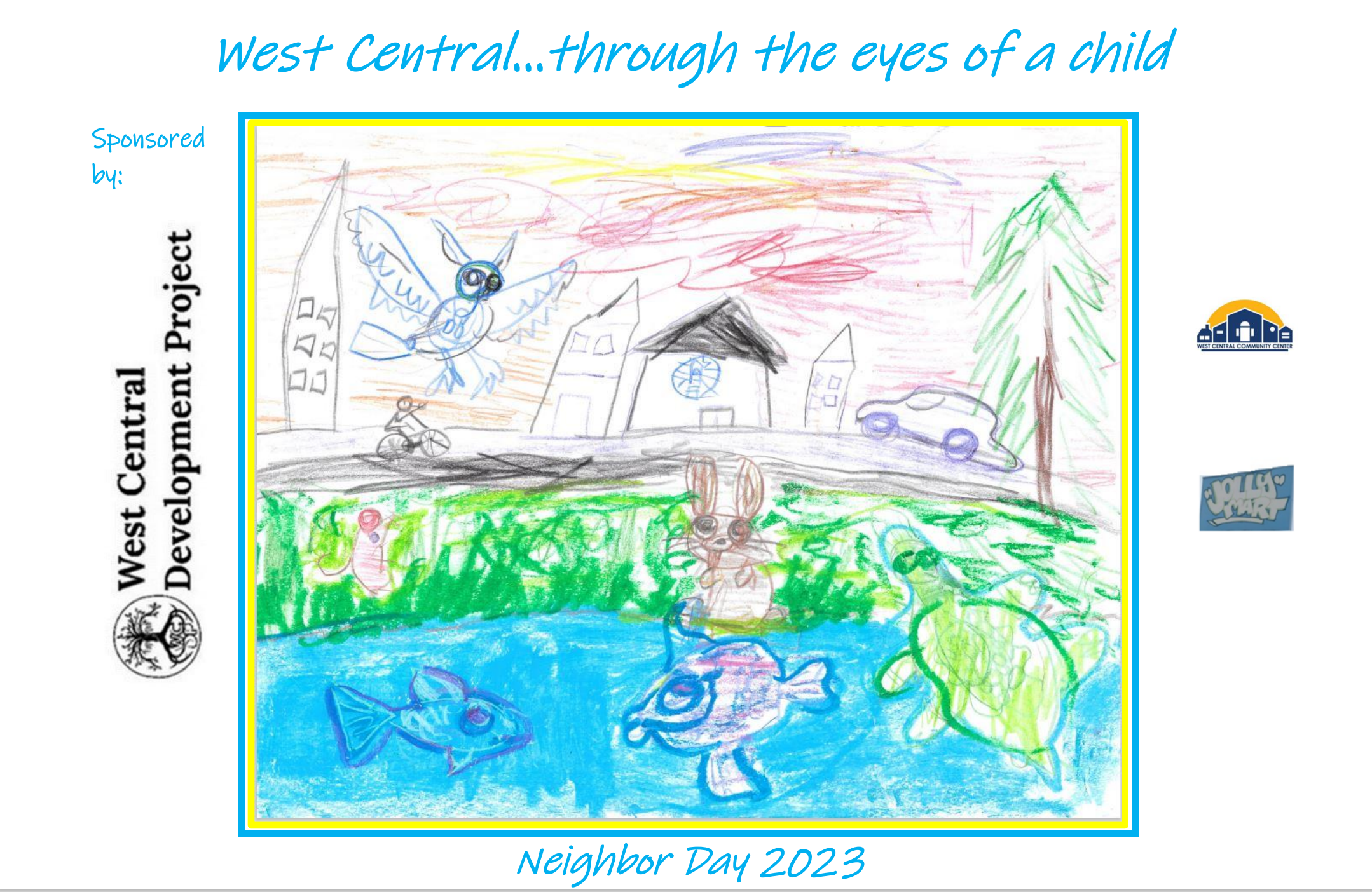 Every year, for Neighbor Day in West Central, the West Central Development Project hosts a poster contest with the elementary school students at Holmes Elementary School and Audubon Elementary School. All of the entries are displayed at the Neighbor Days event at A.M. Cannon Park and the neighbors vote on their favorites. The winners are made into posters and hung on window store fronts throughout west central. I did not make the art, the students did that, but I converted them into posters.