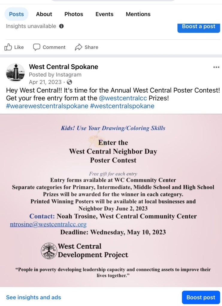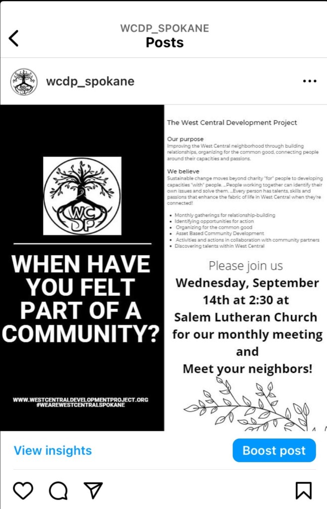 This campaign was two-pronged in that we targeted businesses in West Central to set up booths at the West Central Community Center as a way of engaging neighborhood residents. We partnered with Spokane C.O.P.S., The West Central Development Project and the West Central Community Center. I created all the media content for this campaign.